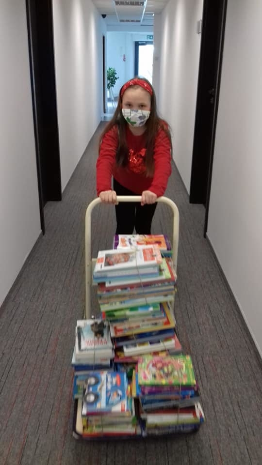 Szkolny klub Wolontariatu zakończył akcję zbiórki książek dla dzieci przebywających w szpitalach. Udało nam się zebrać 167 książek i 12 czasopism! Wolontariusze szkolni dokładnie przeliczyli ilość egzemplarzy, a następnie uporządkowali i powiązali, przygotowując małe paczuszki, które nasza najmłodsza ochotniczka, wraz ze swoją Mamą, zawiozła do poznańskiego punktu zbiórki. Wszystkim, którzy włączyli się w tę akcję bardzo dziękujemy za okazane serce.