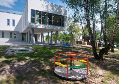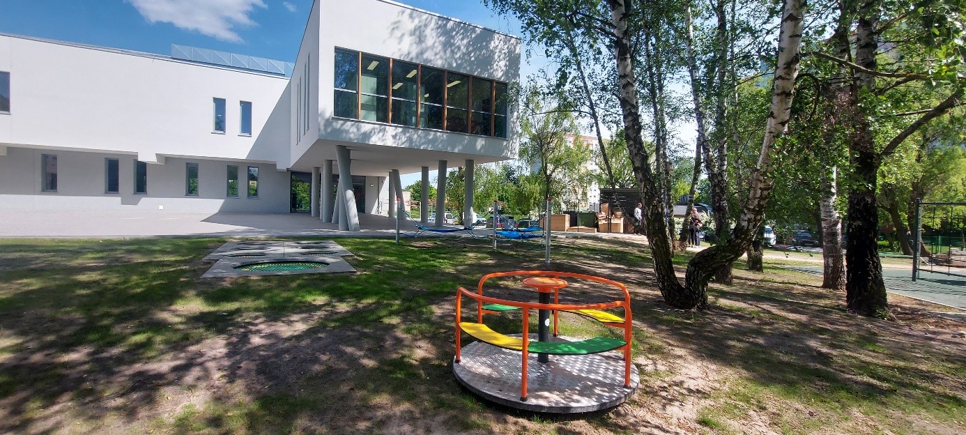 z częścią dydaktyczną. Wyremontowano częściowo obecny budynek szkoły oraz przebudowano zewnętrzne instalacje – m.in. kanalizację sanitarną i deszczową, sieć cieplną oraz oświetlenie terenu. W ramach prac zagospodarowano przyległy teren.
